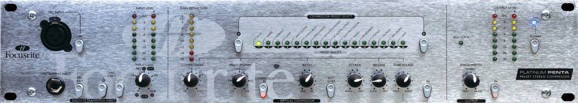 Focusrite have released some fantastic gear over the years and this unit is no exception. The Penta uses an opto activated side chain to control dynamics and does so without mauling the bottom end. It's magical at moderate settings adding clarity and depth while flattening out the volume with lightening quick attack speeds. Its beautiful on drums!